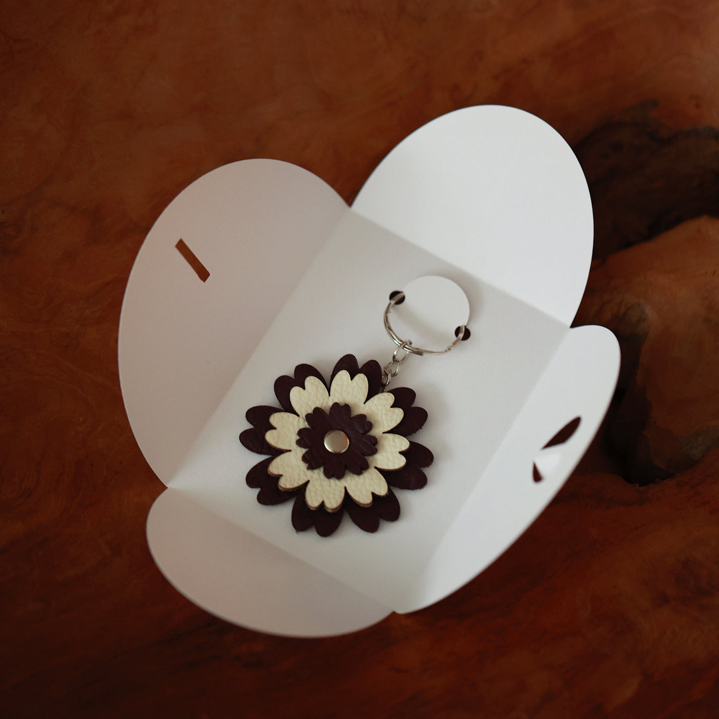 Der Leder-Schlüsselanhänger mit lila-weißer Blume ist die perfekte Kombination aus hochwertiger Handwerkskunst, Nachhaltigkeit und zeitlosem Design. Bestellen Sie jetzt und verleihen Sie Ihrem Alltag oder Ihren Geschenken eine elegante Note!